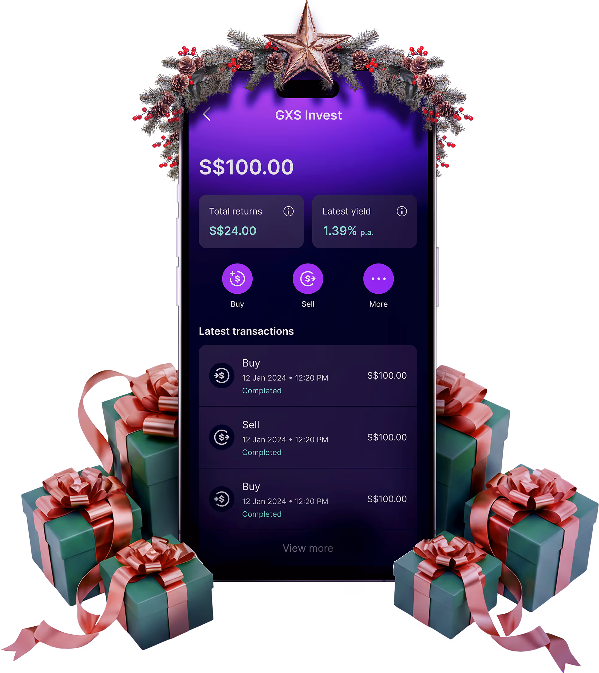Monitor your investments and view your latest holdings, such as the market value, returns and yield, easily on the GXS Bank app.